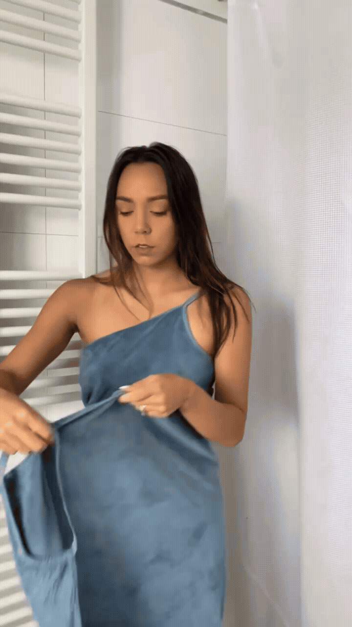 ”I’m a mom of three and always on the go— this makes post-shower time way less hectic! I can move around without hurrying to get dressed or worrying about my towel falling.” - Britney.